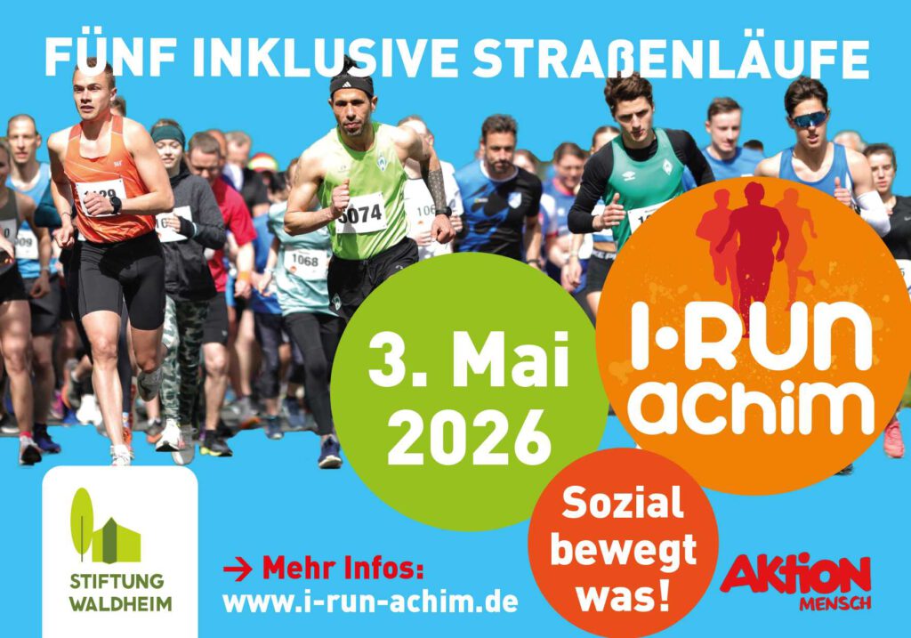 Laufen verbindet und schafft Begegnungen! Am 3. Mai 2026 heißt es wieder: Alle an die Startlinie! Der inklusive Volkslauf I-Run-Achim lädt alle ein – ob groß oder klein, jung oder alt, mit oder ohne Behinderung. Gemeinsam setzen wir ein Zeichen für Inklusion und Vielfalt.